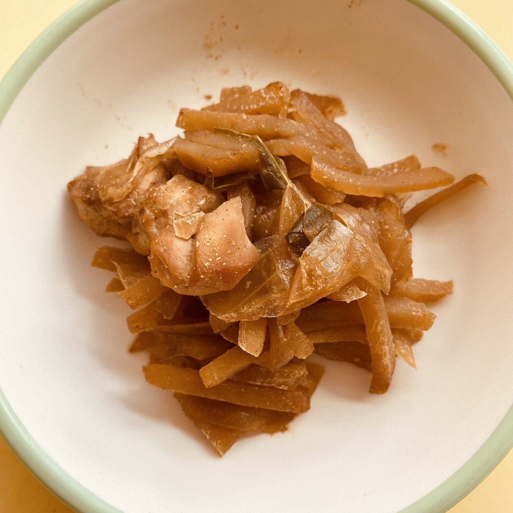 鶏肉とひじきの煮物には干し椎茸を使っています。