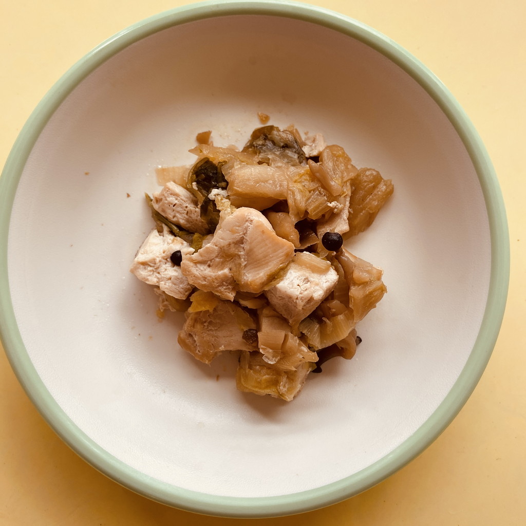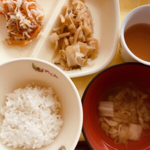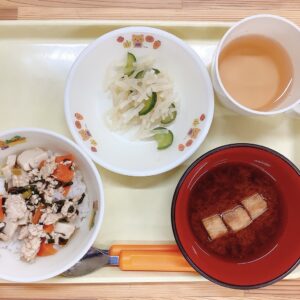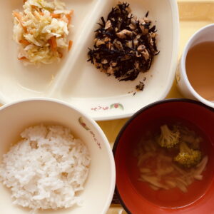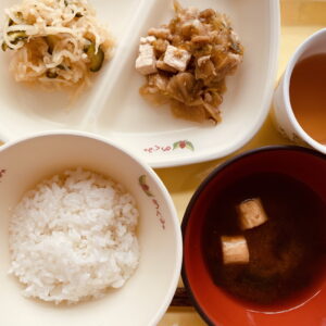 今日の給食は鶏肉と白菜のべっこう煮です。