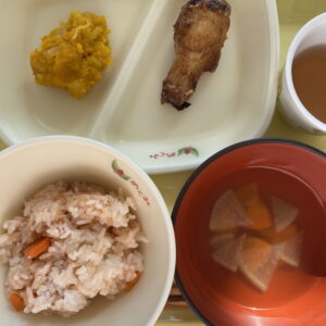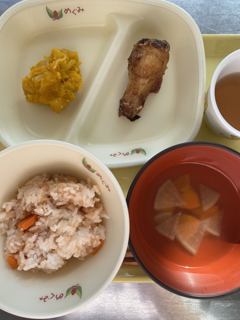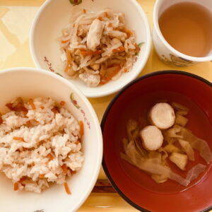 クラスで炊いたごはんに人参ごはんの具をよく混ぜてくださいね♪