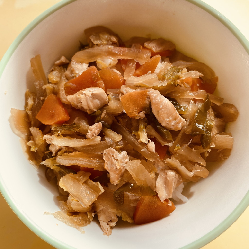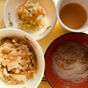 今日の給食は鶏肉と大根の中華風煮です。