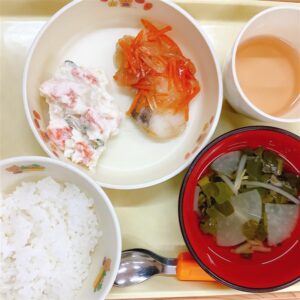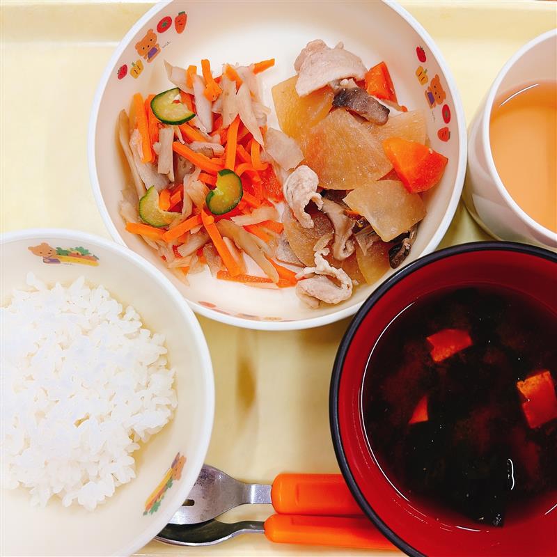 今日の給食は「鶏肉と大根の炒めもの」です。